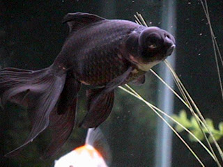 I brought Danielle a new fish from the store for her tank; it's a Black Moor Goldfish, common pet in China and can live up to 25 years, his name is Boggler.